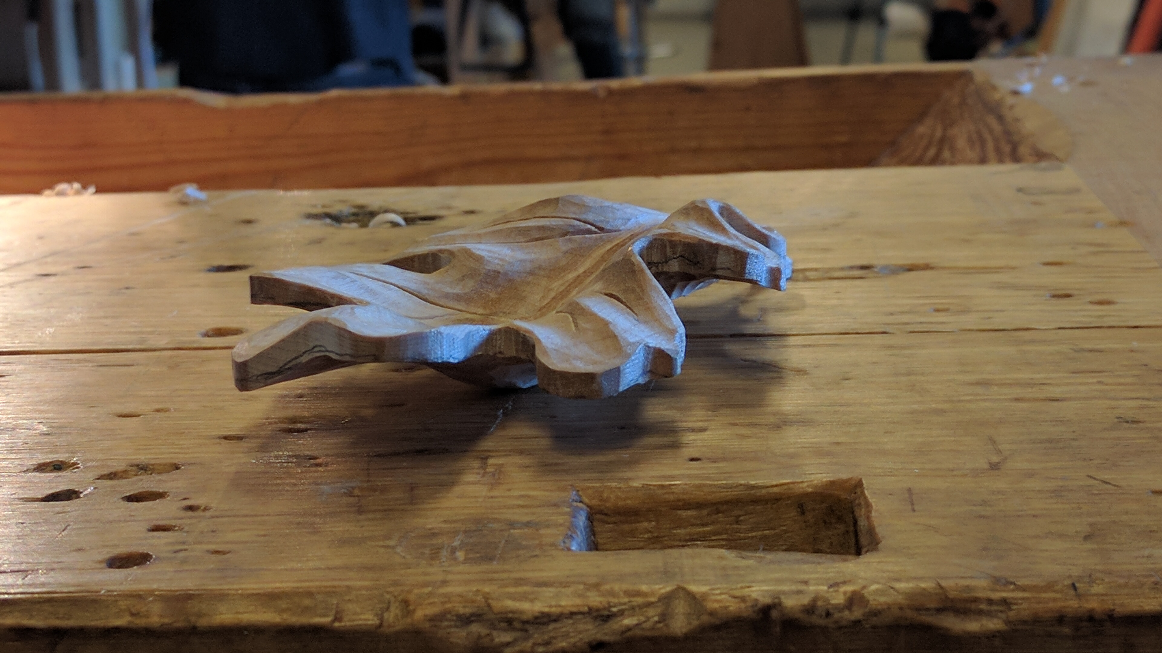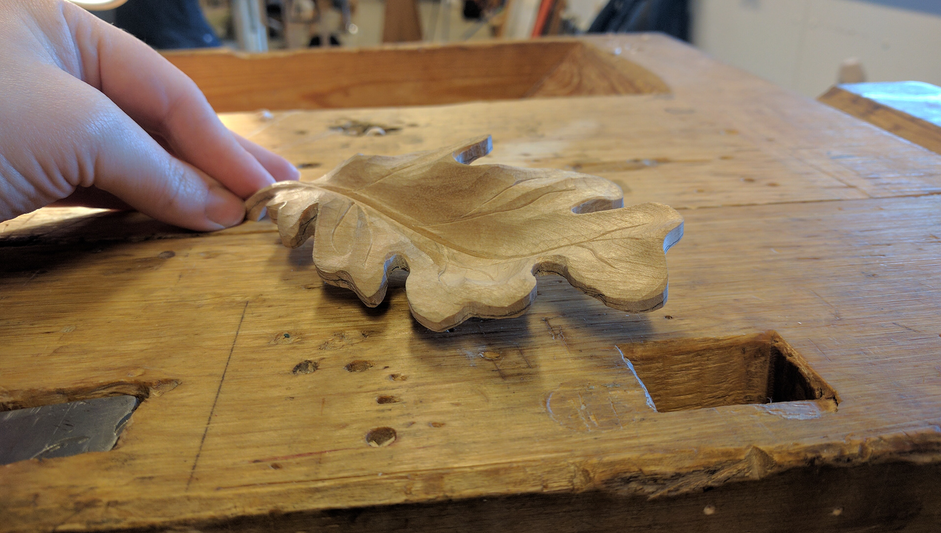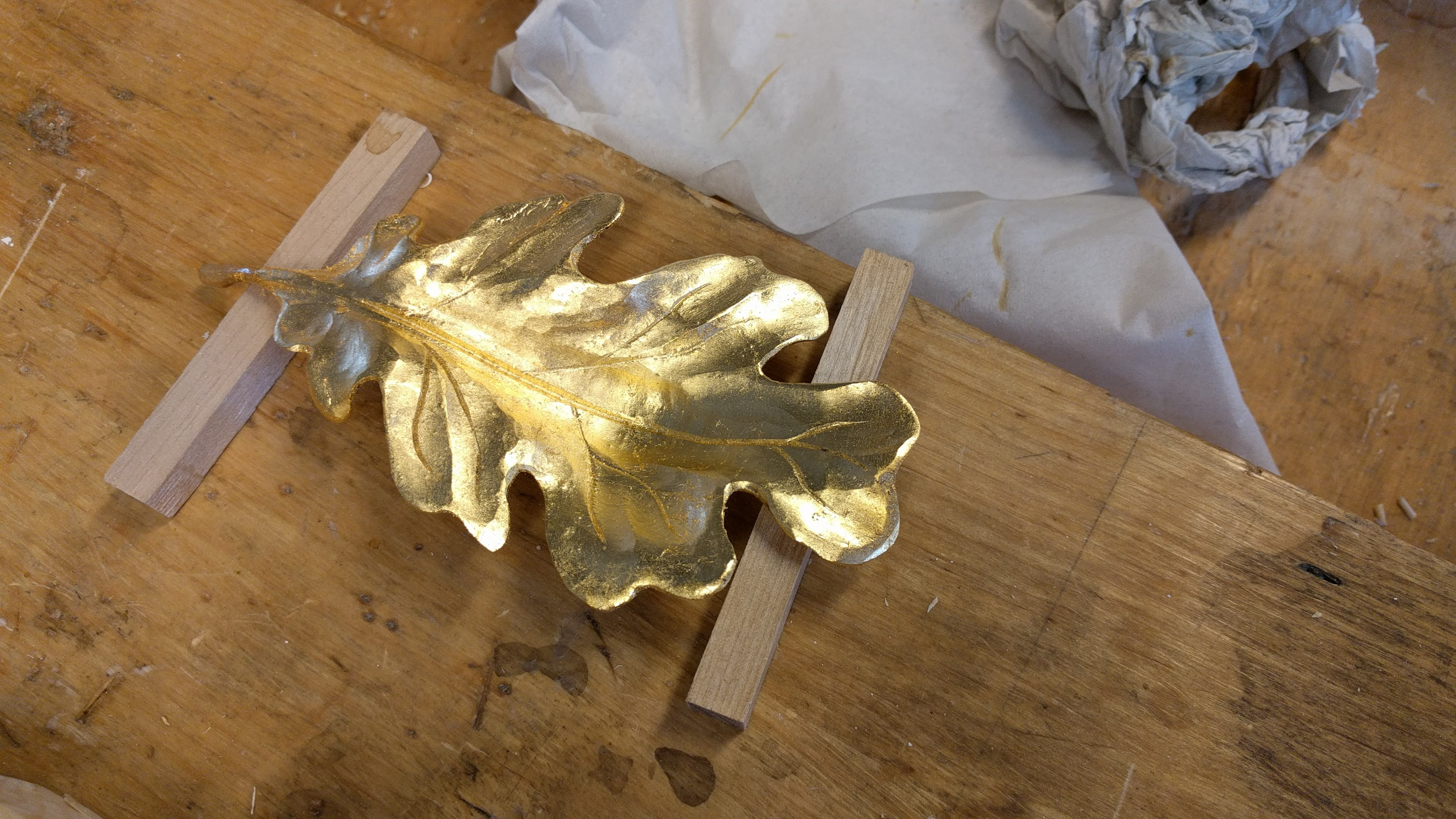 I used this task to test myself in carving an extremely thin and realistic leaf. Later I also gilded the leaf to learn oil-gilding.