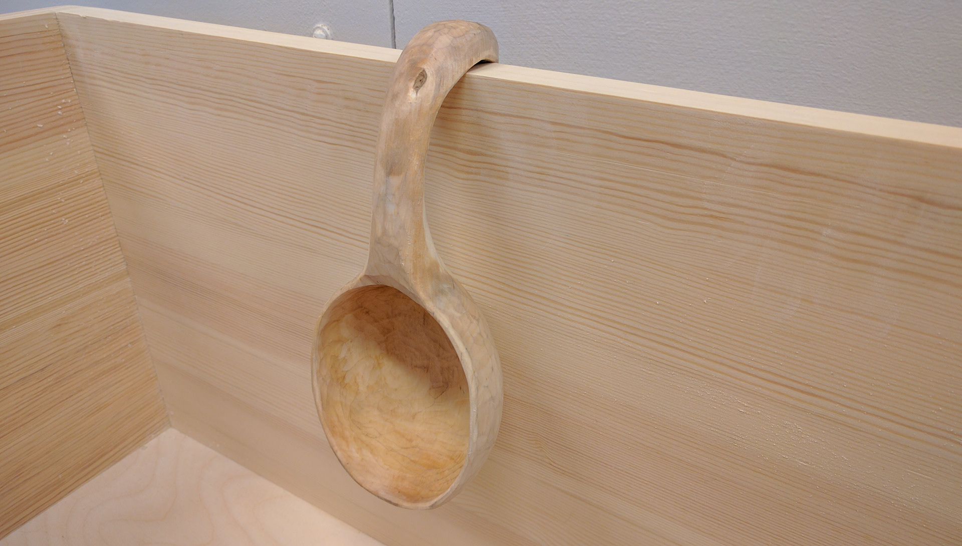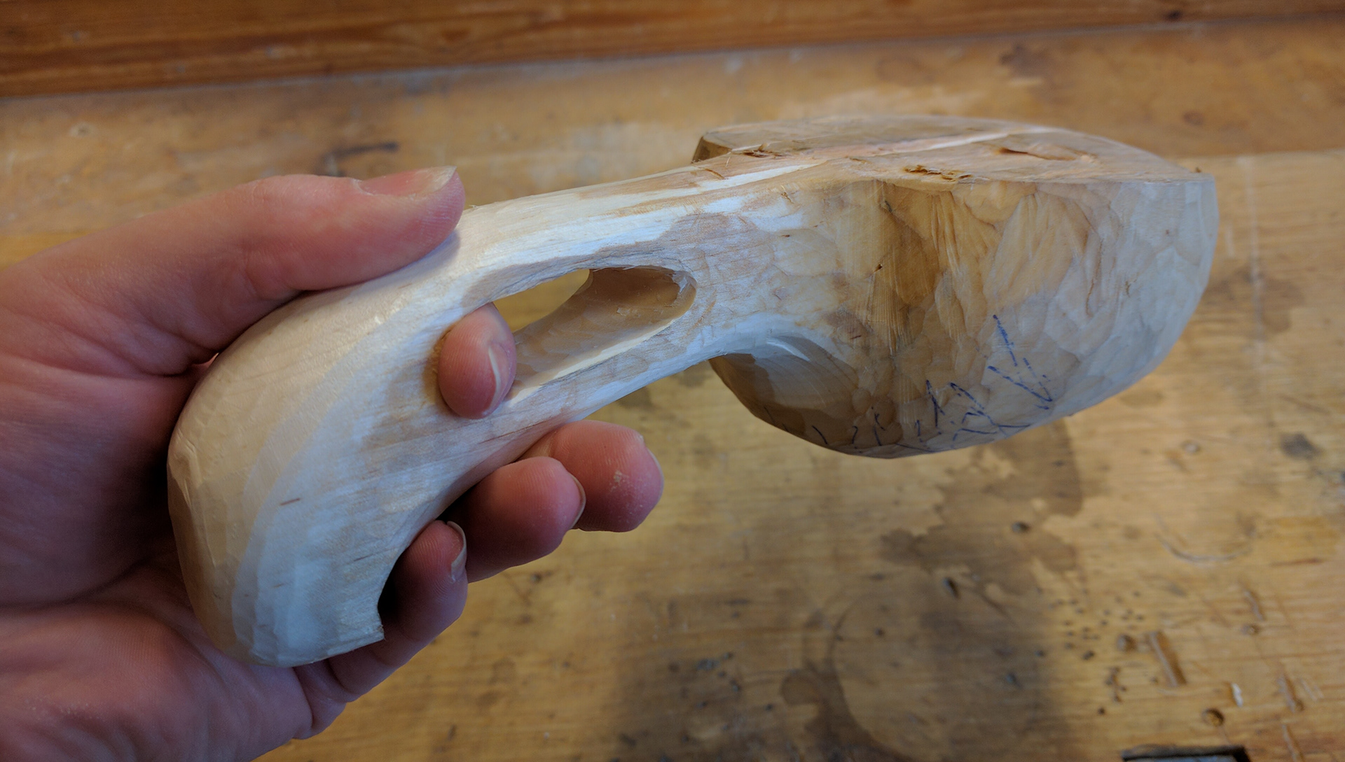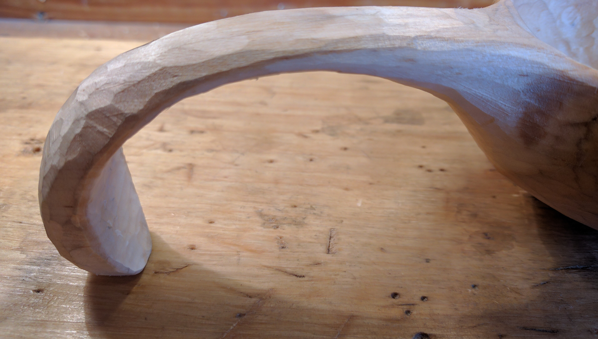 A hand-carved camp or hiking cup, carved from uncured silver birch