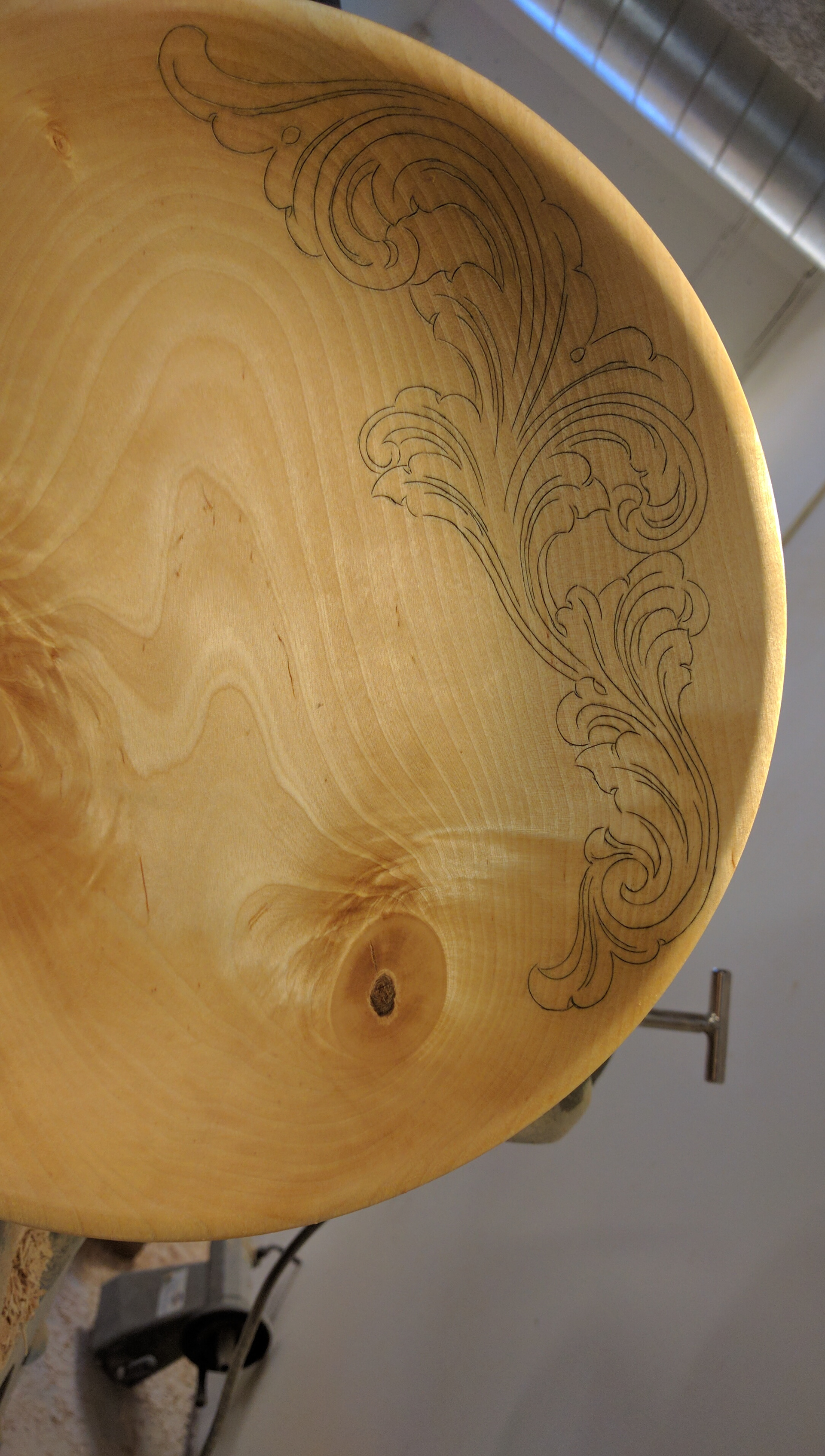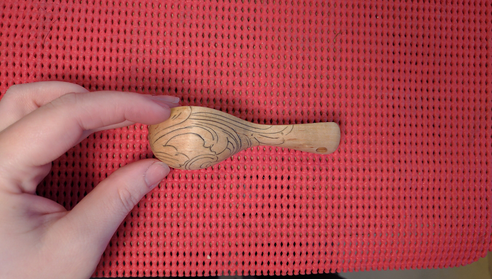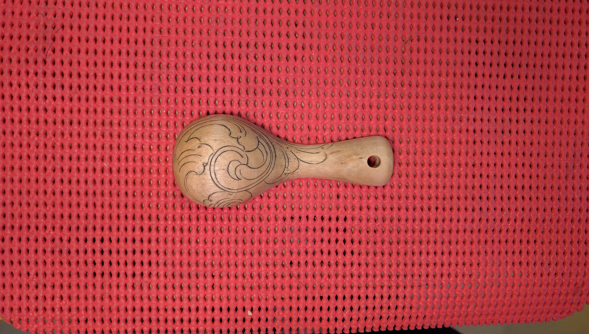 "Kolrosing" is the Norwegian word for the technique of using charcoal to darken thin cut lines. This technique is similar to scrimshaw and other materials can be used, including cinnamon.